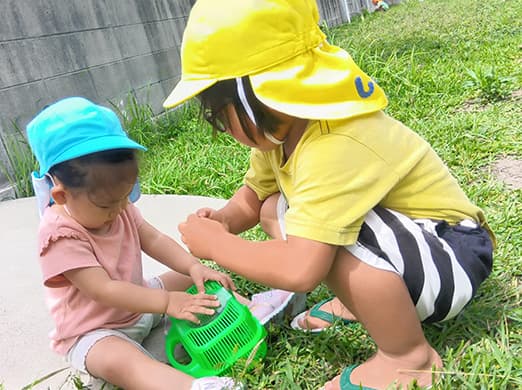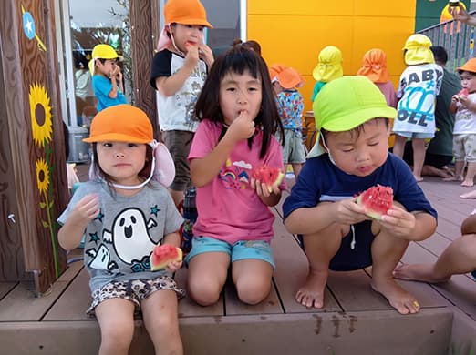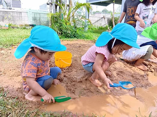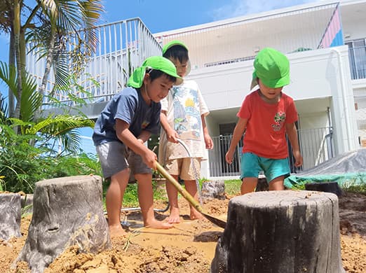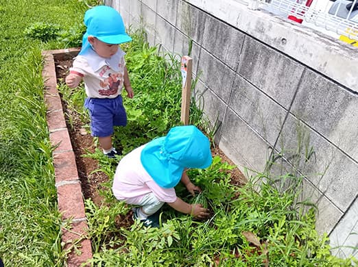 - 園庭に菜園をつくり、育てる喜び、収穫する喜び、そして自然の恵みのありがたさを体感できる環境をつくります。